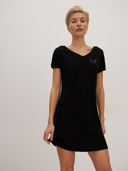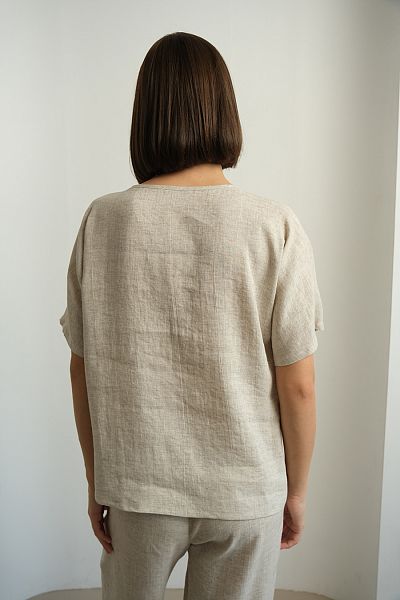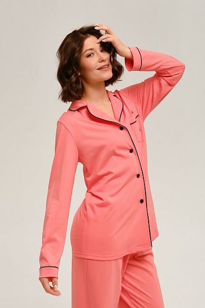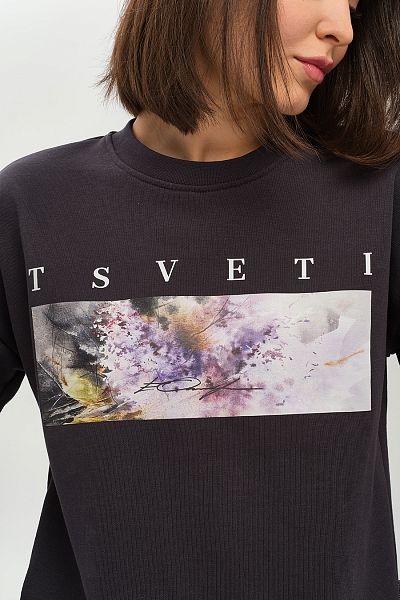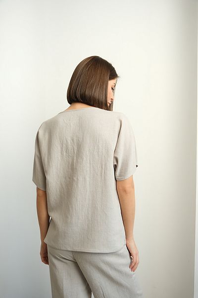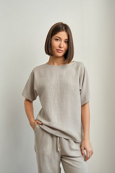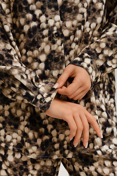 Рубашка с длинным рукавом из струящегося штапеля Pretty Мазки на сером