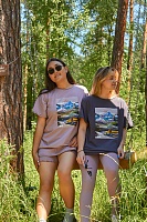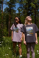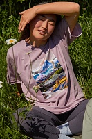 Футболка оверсайз удлиненная Park Пудра/Цветные горы