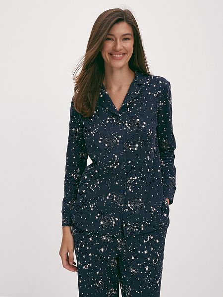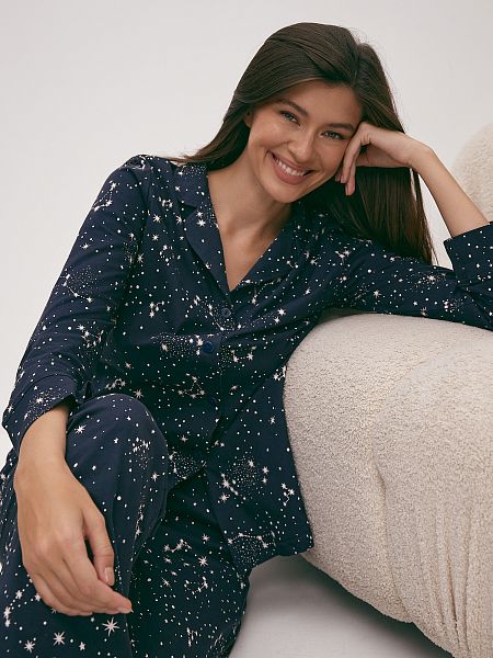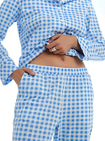 Пижама из хлопка, комплект Slow beauty Бело-синяя клетка