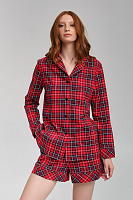 Рубашка из хлопка с длинным рукавом красная клетка Slow beauty