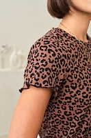 Футболка трикотажная в рубчик Flat White Кофейный леопард