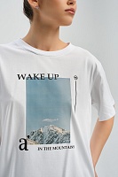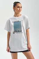 Футболка удлиненная оверсайз с принтом Altai woman Белый/Горы