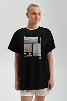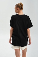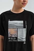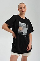 Футболка удлиненная оверсайз с принтом Altai woman Черный/Туман