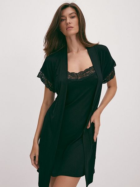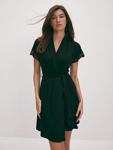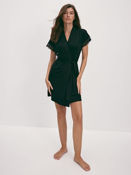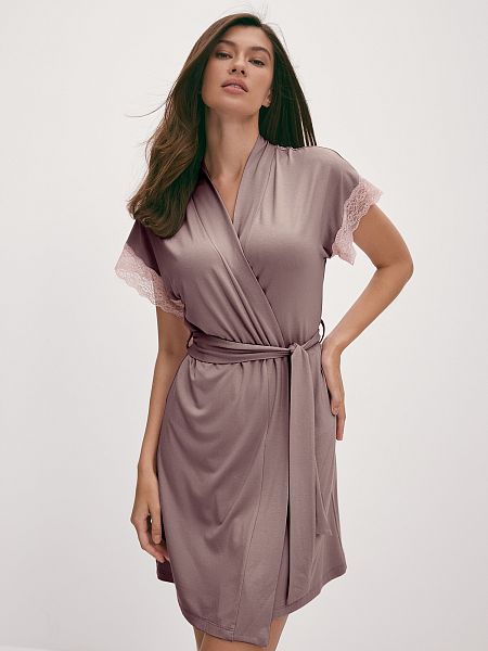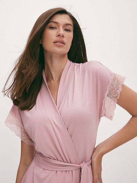 - Декоративный халат — изготовлен из дорогих тканей, украшен кружевами, бантами, может быть использован как нижнее белье.