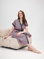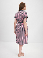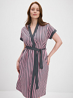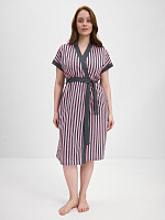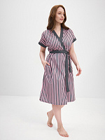 Халат из хлопка с поясом Cozy time Полоска розово-серая