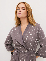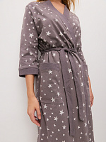 Халат из хлопка с поясом Cozy time Серый/Звезды