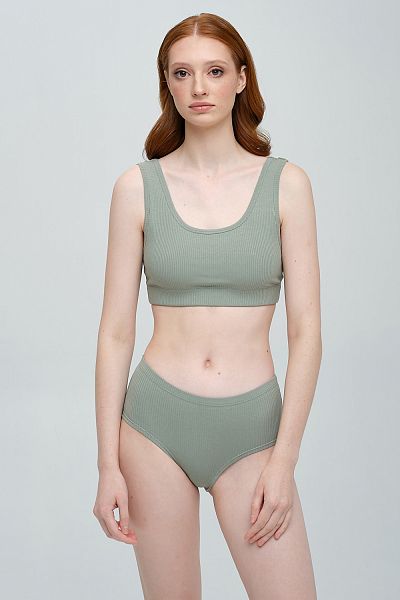 Халат зеленый трикотажный в рубчик Оливка Flat