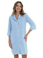 Халат-рубашка из хлопка Slow beauty Бело-синяя клетка