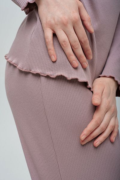 Сочетание, играющее на контрастах — комплект лонгслива и юбки. В таком образе переплетаются женственность с элементами спортивного стиля. Строгости и элегантности добавляет сочетание лонгслива с пиджаком.