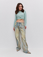 Лонгслив трикотажный в рубчик Basic Шалфей