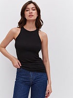 Майка американка черная трикотажная в рубчик Basic