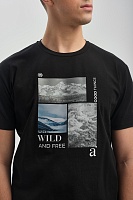 Футболка мужская с принтом Altai man Черный/Горы чб