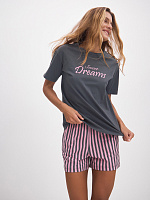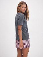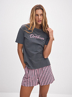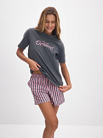 Пижама из хлопка, комплект Slow beauty Серый/Полоска розово-серая