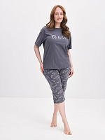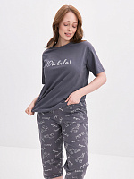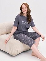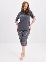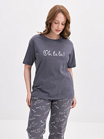 Пижама трикотажная, комплект Slow Dreams Графит/Надписи графит