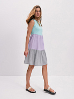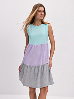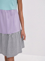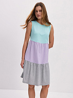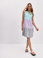 Платье из хлопка Color blocks Минт/Лиловый/Серый меланж