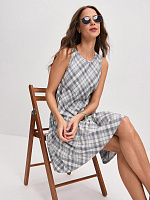 Сарафан с вырезом по спинке из хлопка Kira Клетка/Серый