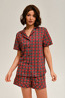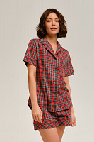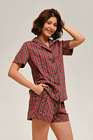 Рубашка с коротким рукавом из хлопка Slow beauty Красно-серая клетка
