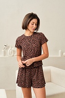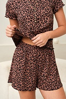 Шорты трикотажные в рубчик Flat White Кофейный леопард