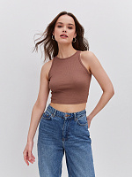 Кроп топ трикотажный в рубчик Basic Капучино