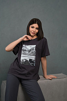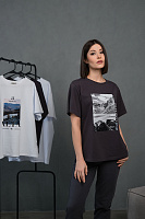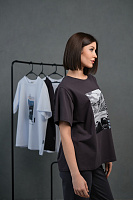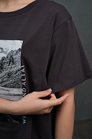 Футболка оверсайз с принтом Altai woman Графит/Скалы
