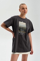 Футболка оверсайз с принтом Altai woman Графит/Автобус