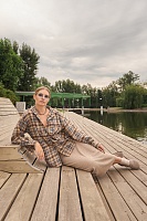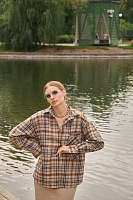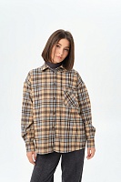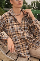 Рубашка в клетку из хлопка City Plus Бежево-коричневая клетка