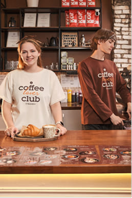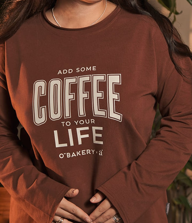 Мы разработали и произвели корпоративную коллекцию, включающую футболки (хлопок с лайкрой) и лонгсливы (футер двухнитка). Каждый элемент — материалы, модели — был подобран индивидуально. Наш дизайнер разработал уникальные надписи и графику, а вся цветовая гамма выполнена в гармоничных кофейно-сливочных оттенках. Результат — стильный мерч, идеально соответствующий атмосфере кофейни.