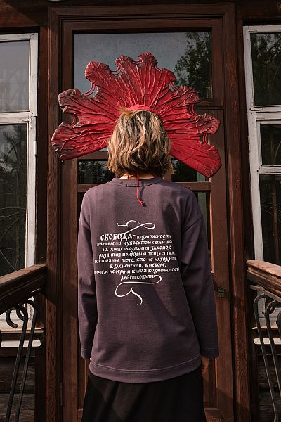 Графический дизайнер Наталья Гусева, известная своим мастерством в создании принтов, переосмыслила славянские образы и символику для этой коллекции. Ее вдохновили орнаменты, древние мифы и мощная энергия народного искусства. Каждый элемент ее принтов – не просто декор, а знак: пегас, символизирующий движение, силу и свободу, птица- как воплощение вдохновения и духовного полёта.